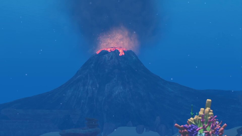 Flash rescata a la Sra. Seahorse de un volcán, sin darse cuenta de que el Sr. Seahorse estaba embarazado.