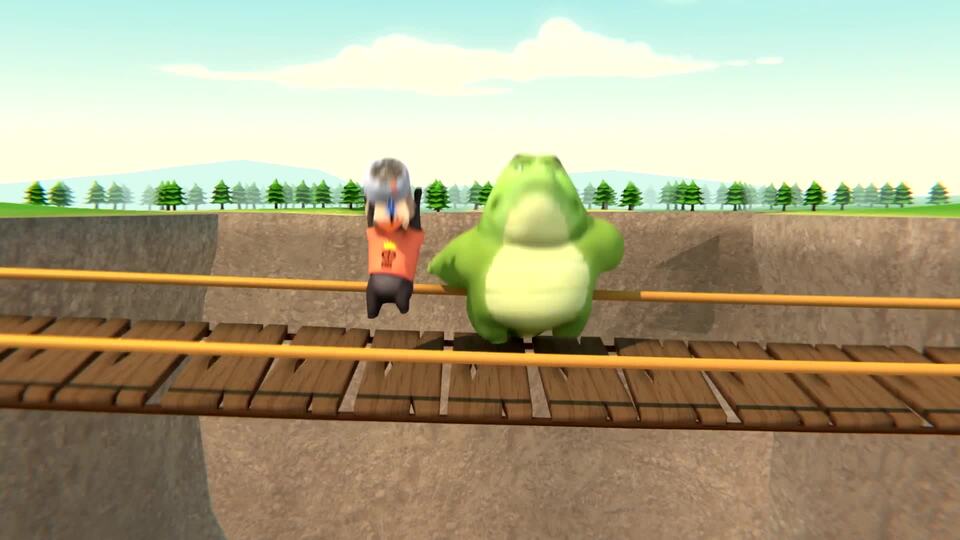 Jeki, Ben y Gob cruzan un puente inestable, enfrentan a un mago y ven un dragón en Año Nuevo.