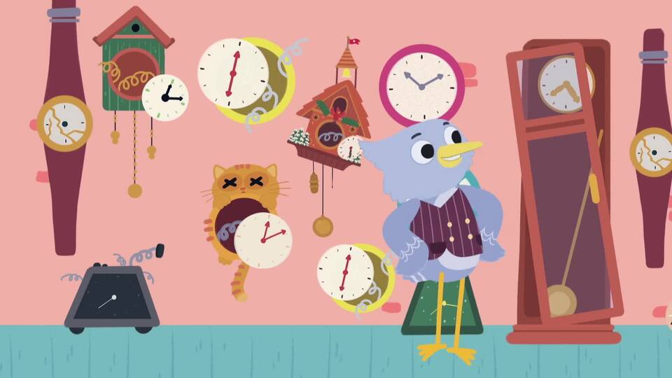Who Who disfruta de su baño, pero quiere otro. Su madre le enseña a esperar y la importancia de los relojes.